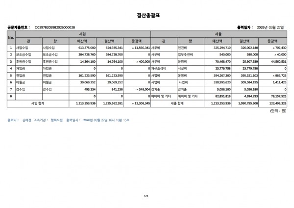 인쇄 스크랩 목록 2025년 행복드림 결산서입니다. 페이지 정보 비츠 88 0 2026-03-27 16:44:50 본문 인쇄 스크랩 목록 이전글 ▲2026년 4월 행복드림 소식지입니다. 다음글 ▼2025년 후원금 수입 및 사용내역입니다. 댓글목록 등록된 댓글이 없습니다. 이전글 다음글 목록